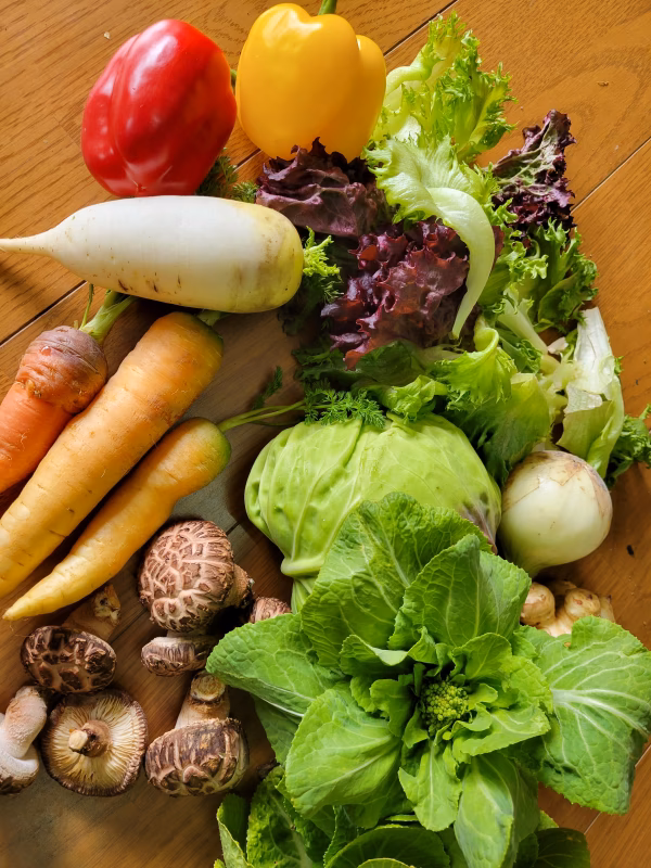 新鮮な空気と長老山からの天然水で作ったお野菜はとても甘く里山を感じて頂けます!