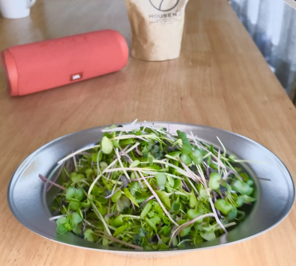 ルッコラ、ケール、アルファルファ、ラディッシュ、ビート、チアシード、フェヌグリーク、ブロッコリー、ロロロッサ、ルビーカイワレ、レッドキャベツ、などの中から時期によって7種類以上をミックスしてお届けします。