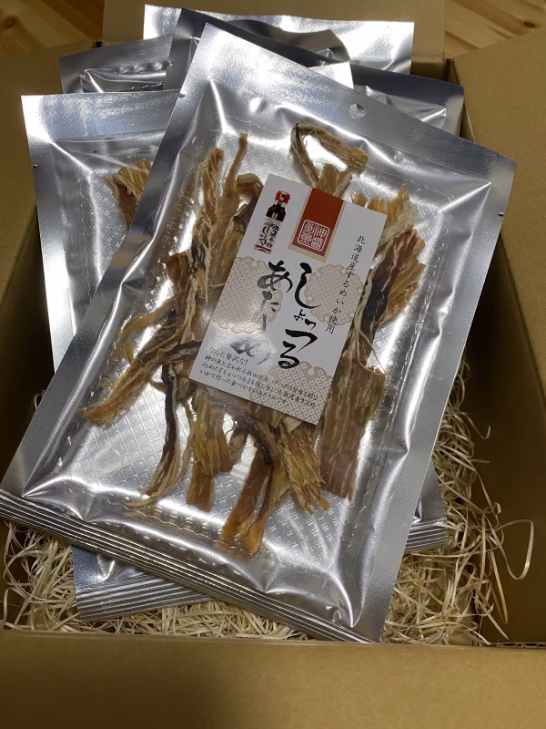 私達が獲ったハタハタだけで作ったしょっつるをあたりめにしました!北海道の長谷食品さんとのコラボ商品になります。