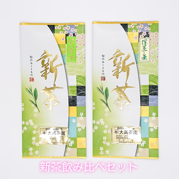 - 普通煎茶・深むし煎茶共に 名称:煎茶 原材料名:緑茶(静岡県産) 内容量:100g