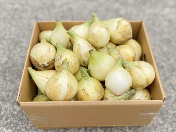S、2Sサイズの新玉ねぎが約30個程度入っています。お手頃価格となってます。