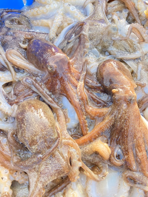 今の時期にしかとれない小さいタコで頭に卵をもっています。