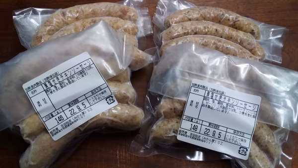 - ・無塩せきチキンソーセージ(プレーン) 鶏肉、塩、澱粉、香辛料(当施設では乳、小麦を含む商品を製造しています) ・無塩せきチキンソーセージ(ハーブ) 鶏肉、塩、澱粉、香辛料、ハーブ(バジル、セージ)(当施設では乳、小麦を含む商品を製造しています)
