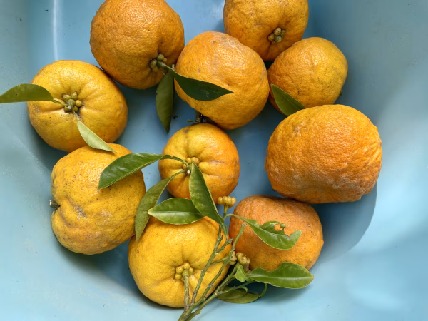 棚田の一番高い7号農地の柑橘畑に1本生えている樹齢30年以上の樹から取れた橙です。