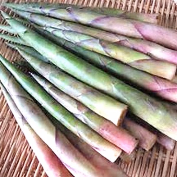 かつて山岳信仰修験者の霊場でもあった山形県の月山の山腹・山麓で生育する天然たけのこは別名「月山筍」と称されています。その表皮は赤みを帯びていることから「赤いダイヤモンド」とも言われ太く柔らかいみずみずしさと甘さを備えた希少な天然根曲がりたけのこです。