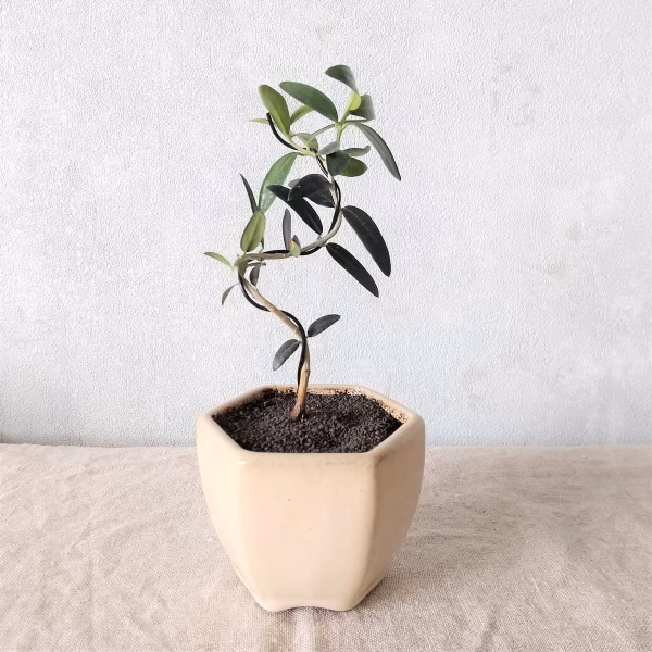 オリーブは好きだけれど、こじんまり小さいままで長く付き合いたいという方にぴったりの、盆栽向きのオリーブです。