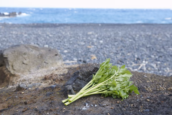 明日葉は伊豆諸島特産の野菜で、今日切っても明日には芽を出すとの伝承から明日葉と呼ばれる、非常に生命力の強い野菜です。