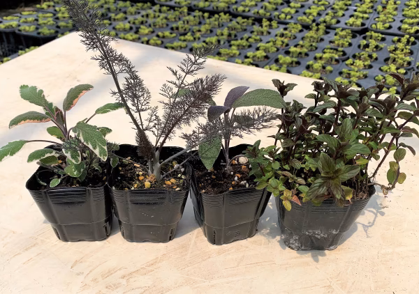 葉の色がブロンズ&パープルのハーブ苗セットです。