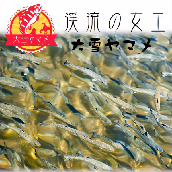 当養魚場では約1年間大雪山からの冷たく綺麗な雪解け水で大事に大事に育てたヤマメを「大雪ヤマメ」というブランド名で出荷しております。