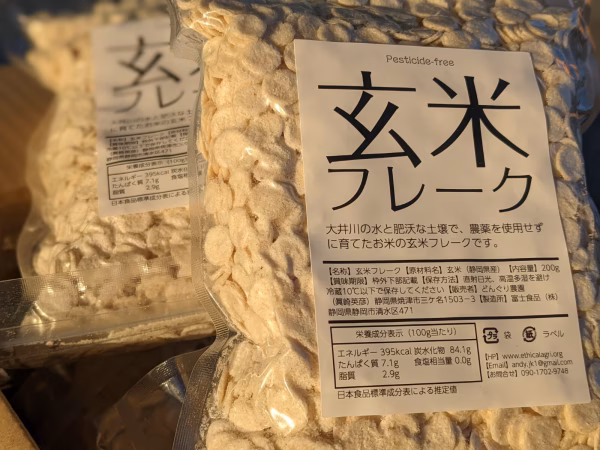 農薬不使用の玄米で作られた玄米フレーク。味付け、添加物は一切ありませんので、素材そのままのフレークです。お米の自然の味そのままで、消化吸収がとても良く、離乳食などにも最適です。