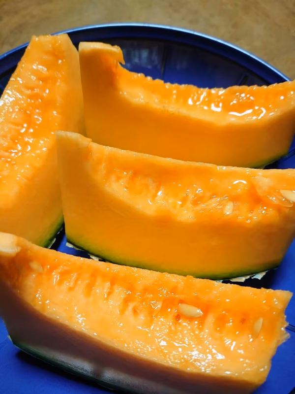 クインシーメロンはオレンジ色の果肉です。果肉が柔らかくジューシーで香りが強いです。