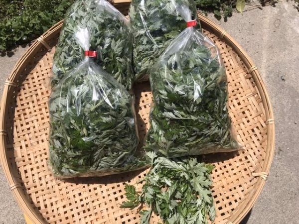 標高550m絶景の畑に生えてくる天然よもぎの若葉だけを丁寧に手摘みしました。