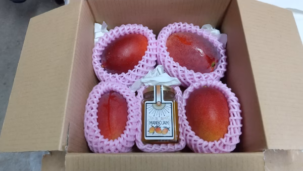 東口農園産完熟マンゴー4個約1.2kgとマンゴージャム180g1瓶
