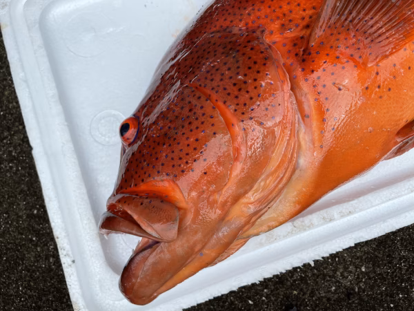 素潜りでの魚突きで捕獲しています。常に頭、エラ付近を狙うように意識していますが、体に撃つ事もあります。
