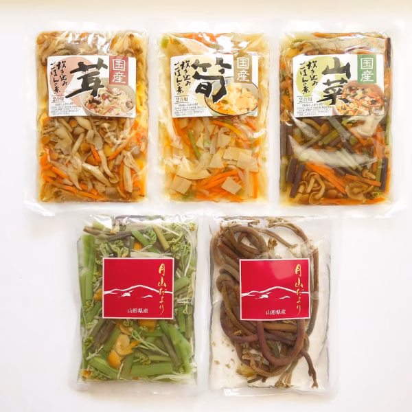 この商品の原材料である山菜・きのこは主に出羽の国(山形県)に聳える霊峰月山山系で採取した優良国産品をさらに厳選しました。加えて水にもこだわり月山山系を脈々滔々と流れるミネラル・マイナスイオンの豊富な月山伏流水を使用しています。食すれば体に優しく、どこか懐かしい田舎の風景を思い描いてしまうかもしれません。