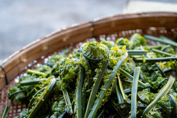 こごみはアクがあまりないので、そのままおひたしや天ぷらなどいろいろな料理にあうと思います!