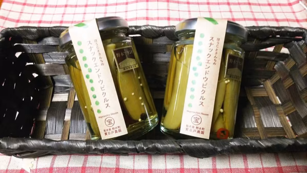 • 甘酸っぱくてシャキシャキ《ほうじとさんちのスナックエンドウピクルス》