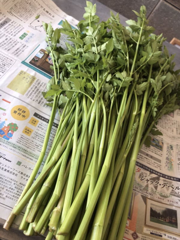 冬、そして晩春を迎え、 セリの茎葉を山菜のように調理して食べる時期となりました。 当地格言はセリ可食時期は「カッコウが鳴くまで」。 1キロは、一般に流通するセリの10束ぶんです。 おひたしに、天ぷらに、炒め物に、薬味に。 手打ち蕎麦やさんの薬味や天ぷらに好評いただいてます。 イタリアンでは、ジェノベーゼみたいなソースにしても。 「春の皿には苦味を盛れ」格言通りの滋味。 冬の根を楽しむでなく、 春の苦味を楽しむ東北の食材です。 東北食べる通信2019年3月号にお世話になりました。 農薬及び化学肥料は栽培期間中も以外も使用しておりません。 2011年より出荷前に放射能測定し下限値以下を確認しています(詳細はお問い合わせください)。 宮城県名取市下余田地区の在来野菜、名取せり。 自家採種し全ての生産工程で、 農薬及び化学肥料を使用せず有機農業により生産しています。 栽培収穫は9月から5月くらいまで続いていきます。 美味しい部位や状況変化、価格変動もありますので、 月ごと別の出品とさせていただきます。 5月のせりは、晩春の盛り「旬の名残り終盤」。 根っこ無しの茎葉部分をお届けします。 栄養生長から生殖生長に切り替わり、 根からじわじわ旨味が茎を経由して新芽へ移動します。 茎葉部分をお浸しや酒蒸しだし巻き卵、 パスタにピッツァにも、 和洋中を問わず、当地ではご利用頂いています。 新型コロナウイルスの影響で、 仙台せり鍋を飲食店で楽しむ方々がすっかり居なくなってしまいました。 毎年たくさんご用命頂いていた飲食店さんからの注文が、 ほぼ無くなっています。 旬の季節の在来野菜を、 からだに食生活に取り入れていただければ幸いです。