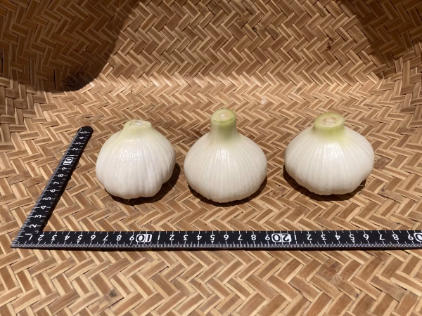 通常は収穫後乾燥して出荷しますが、採れたての水々しい生にんにくです。