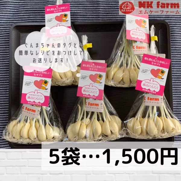 ▼自己紹介 はじめまして!MK farmは群馬県で満点にんにく(発芽にんにく)の栽培、販売をおこなっています! 美味しくて栄養価が高い、満点にんにくを皆様に知っていただける事を目標に頑張っています! よろしくお願いします🙇‍♂️ ▼商品概要 お得な群馬県産満点にんにく50本 (10本入り5袋) ▼味の特徴・食べ方 ○味の特徴 にんにくを発芽させる事によって、にんにく特有な辛味が苦手な方でも美味しく召し上がっていただけます! レンジで1分程度チンしていただくと、よりにおいが残りにくくなります! ○オススメなお召し上がり方法 素揚げや、素焼き、天ぷらなど…etc レシピをお付けしますので、参考にしてみてください! ▼栽培/生産方法、こだわり ○栽培 水耕栽培なので、農薬も使用しておりませんので、お子さんでも安心して召し上がっていただけます! また年間を通して徹底的な温度管理、湿度管理をおこなう事によってサイズのバラツキなどを減らしています! ○衛生面について にんにくの種を割る作業、剥き作業、植える作業、収穫作業、袋詰め作業の全ての工程において、手袋を使用し一切素手で触れる事なくお客様のお手元に届きますので、安心してお召し上がりください! ○栄養について 鉄分やカルシウムなどがとても豊富になっておりますので、健康づくりにも役立ちます!