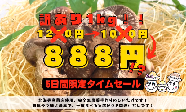 5. 【セール最終日!!】訳ありしいたけ1Kg!!形は変でも味は最高品質です!