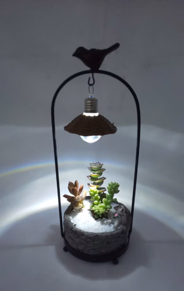 ▼商品概要 涼しげな鉢に可愛い多肉が植えられた商品。 暗くなったら上の照明でライトアップ!