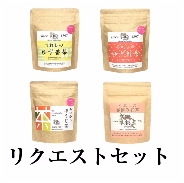 「春摘み茶」×1、 「ゆず紅茶」×1、「ゆず番茶」×1、「あいかわほうじ茶」×1、