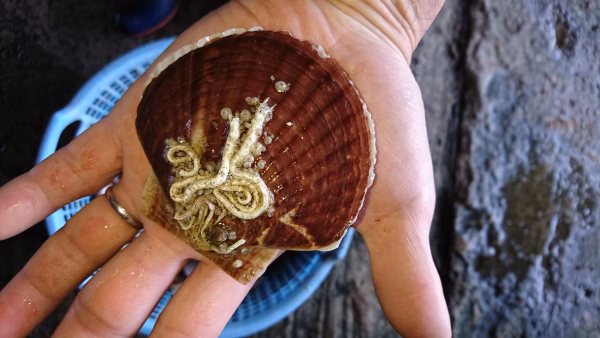 栄養分豊富で強い海流でもまれてホタテが育ちます。