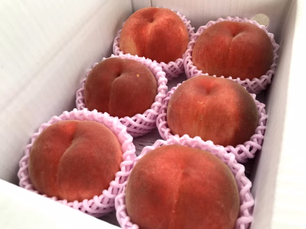 平成26年に登録されたばかりの山梨県限定生産品種。味の良い『』浅間白桃』と着色の良い『暁星』を掛け合わせていいとこどりした期待の新品種です!しかも400g近い大玉が多く、どれを食べてもはずれの少ない安定した品質とされています!