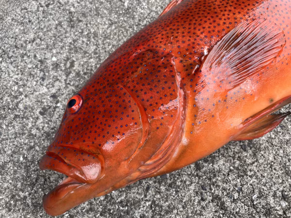 素潜りでの魚突きで捕獲しています。常に頭、エラ付近を狙うように意識していますが、体に撃つ事もあります。