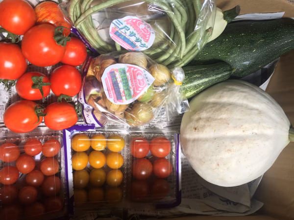 ・その時に採れるものによって各お野菜の構成が写真と変わることがありますが、ご了承ください。ミニトマトを多めにしてほしい、など、ご希望があれば、事前にご連絡ください。