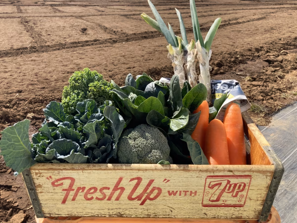農薬・化学肥料を使わずに栽培した、食べ頃”旬”野菜セットです。お野菜は全て露地で栽培しているので、太陽と季節の風をいっぱい浴びて、元気に味わい深く育っています! 旬ならではの美味しさ、収穫したての新鮮さをお届けします‼ ★季節ごとの採りたて’旬’野菜をお送りします。  露地で多品目の野菜を栽培しています。  例として  [春]菜の花、サニーレタス、空豆など  [夏]なす、おくら、枝豆、モロヘイヤなど  [秋]カリフラワー、かぶ、春菊、里芋など  [冬]ケール、芽キャベツ、ほうれん草など  などから、当日収穫出来る野菜が入ります。 何が届くかはお楽しみ(^^)