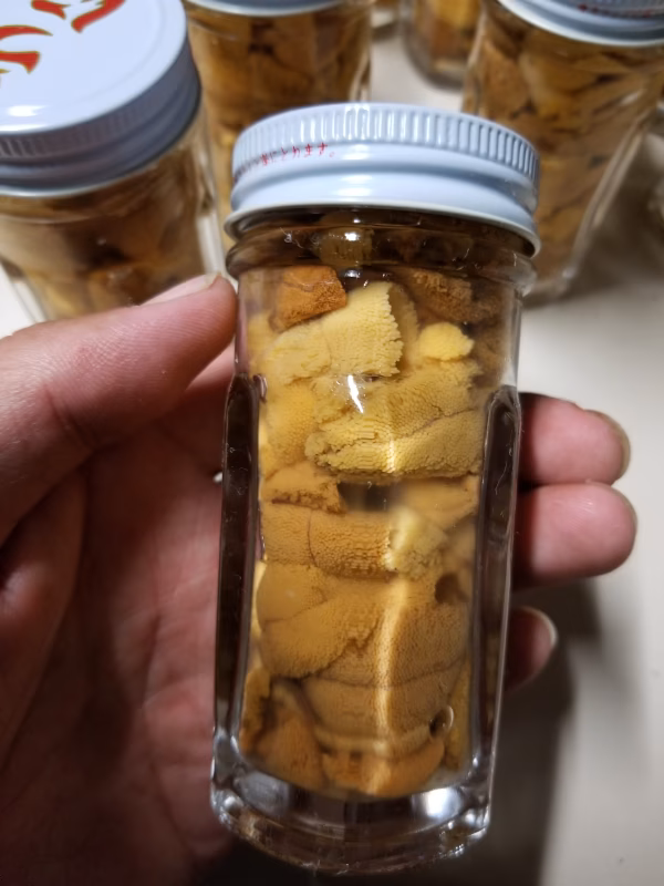 素潜りで採ってきて、新鮮なうちに割ってます。