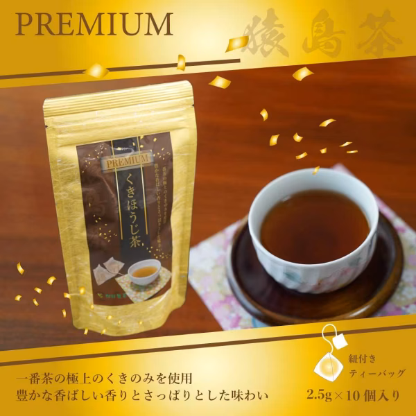 - 品名 プレミアムくきほうじ茶 原材料名 ほうじ茶 内容量 2.5g×10個 賞味期限 製造日より1年間 保存方法 直射日光や高温多湿を避け、涼しい所で保管してください。 原材料産地 茨城県産