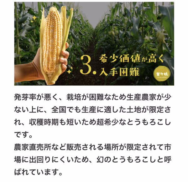 指定日などはトウモロコシという特殊な作物で承っておりません。