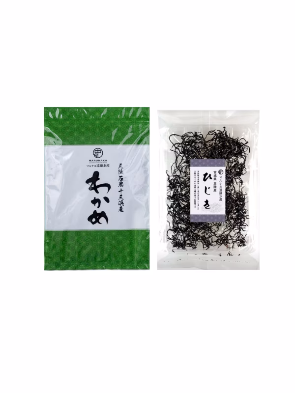 - ●わかめ 名称:湯通し塩蔵わかめ 原材料:わかめ(十三浜産)、塩 内容量:120g ●ひじき 名称:乾ひじき 原材料:ひじき 内容量:16g 製造者:宮城県石巻市北上町十三浜字大指89-2 ㊥マルナカ遠藤水産 遠藤俊彦