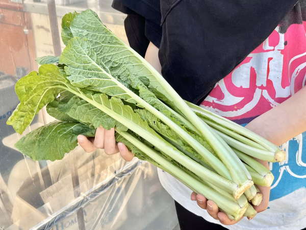 通常、野沢菜は太く大きく育ててから収穫するのですが、わたしたちはご家庭でも活用しやすいよう、扱いやすい小ぶりなサイズの時に収穫しております。