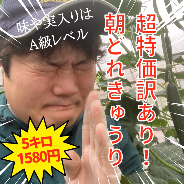 形が曲がって出荷基準に満たない規格外の不揃いきゅうりを超特価で販売いたします。