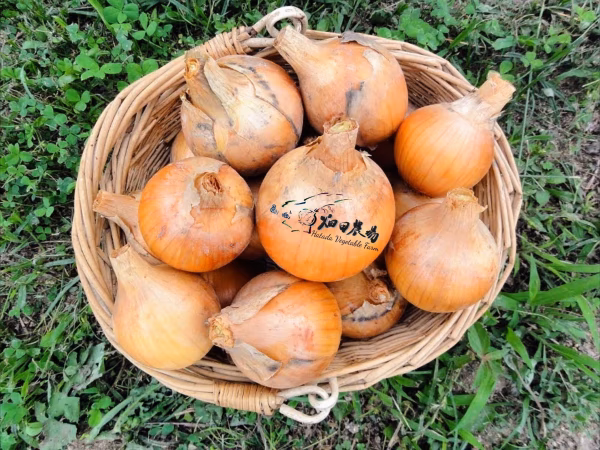 当農場の玉ねぎは、辛味が少なく、目が痛くなりにくいことが特徴です。生食でサラダはもちろんのこと、炒め物でもとても美味しくお楽しみいただけます。