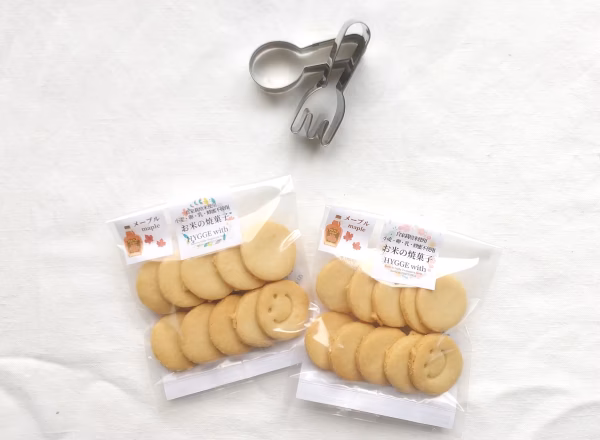 種籾を毎年繋ぎ大切に栽培し続けているお米『はざかけ米にこまる』を主材料に、アーモンドパウダーを合わせ甘味はきび砂糖をメインに焼菓子によってメープルシロップも使用し、油は米油を使用、ベーキングパウダーは使わずにさくさく&ざくざくと食べ心地良く焼き上げました。