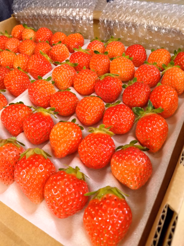 一般的なイチゴが作れない夏秋どりの品種。 イチゴらしい甘酸っぱい香りも強く、この時期に出回るイチゴのなかでも味のバランスがいいです。