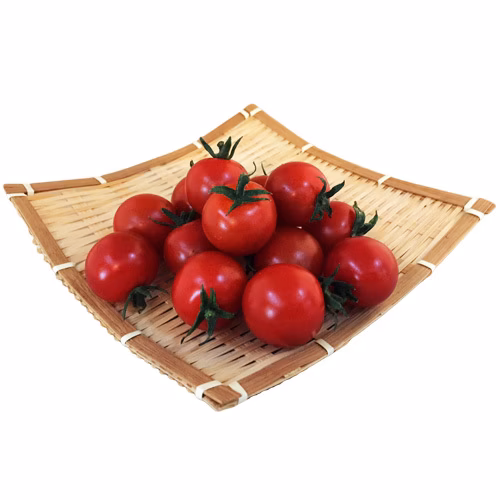 鮮やかな赤色で、8度以上の安定した糖度と見た目のつややかさは、見ても食べても満足できるフルーツミニトマトです。ビタミンAやC、B群、P、Hなどビタミン類が豊富に含まれているので、美肌保持や成人病予防のほか、食欲増進、疲労回復、夏バテ防止などの効果が期待できます。普段の食事の彩りのほか、お弁当のおかずやおやつにぜひどうぞ。期待は裏切りません!ぜひ一度お試しください。有機肥料のみで栽培しています。