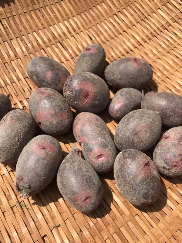 一方、中身は他のじゃがいもに近い濃い黄色で、栗とじゃがいも中間のような甘みがあり、ホクホクしたおいしいじゃがいもです。