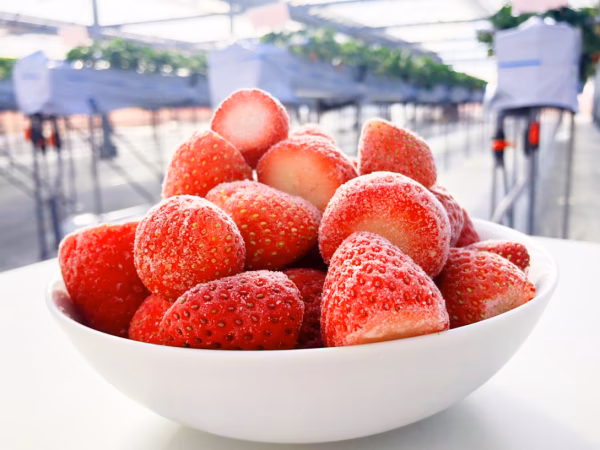 朝採れいちごをその日のうちに、新鮮な状態で冷凍しています。冷凍ですがそのまま食べても甘みがあり、お子さまのおやつやデザートに、加工用として自家製ジャムやソースにしても最適です!
