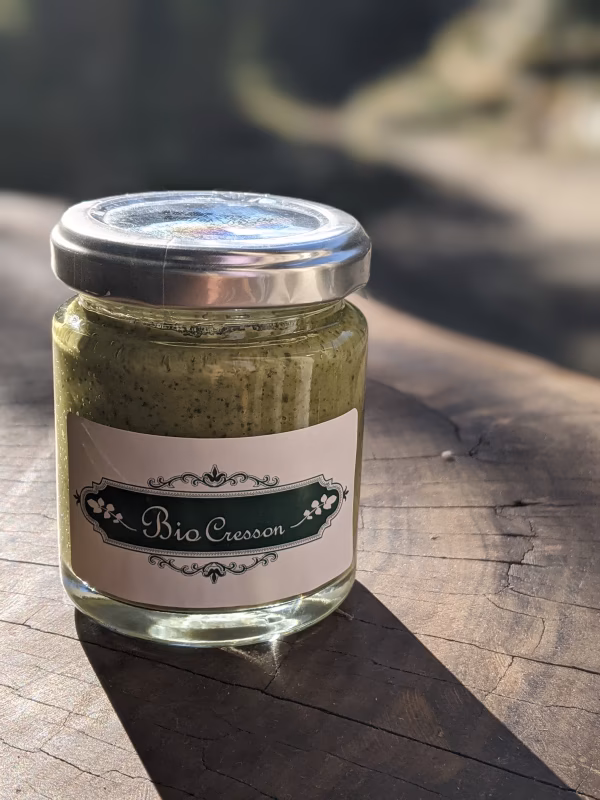 ▼原材料:発酵調味料、クレソン(山梨県産・静岡県産)、食用オリーブオイル、カシューナッツ、レモン果汁、にんにく