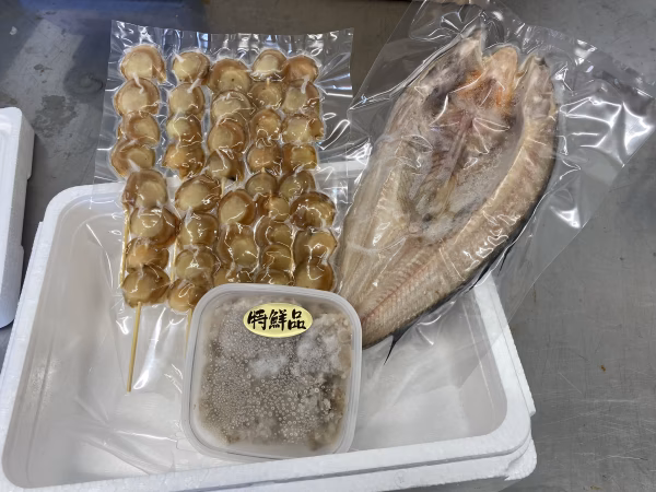 ホタテは解凍してホットプレート、炭火でかるく焼いてお召し上がりください。