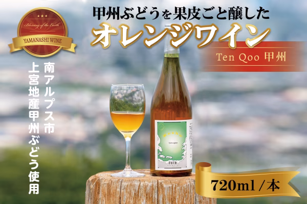 南アルプス山麓の市之瀬台地で垣根仕立てで栽培した甲州ぶどうを赤ワインのように醸してオレンジワインに仕上げました。