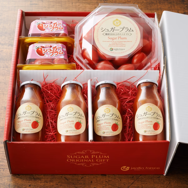 生鮮のシュガープラムとは一味違うコクのある甘さの高リコピンジュースをお楽しみいただけます。