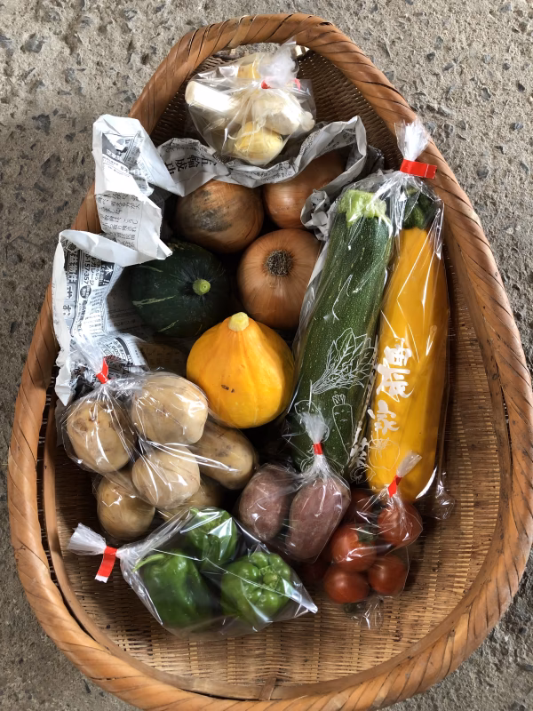 自家製農薬や化学肥料不使用の野菜をちょっとずつセットにしました。