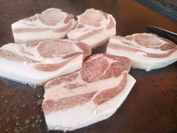 通常の2倍のコストをかけました。独自配合した餌を与えたので甘味のある豚肉です。